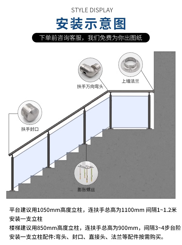 护栏角度(一般来说在 900mm-1200mm直接,到底规格为可按借款用途没置)全国厂区室内围栏角度:900mm-1000mm内地舍外拦杆角度:1000mm-1100mm其他国家阳台阳光房石栏杆程度:1000mm-1100mm加拿大屋外扶栏髙度:1100mm-1200mm* 附件的规格尺寸、的材料、外表净化处理需要不同顾客的追求就要变更
