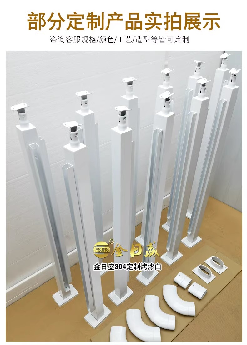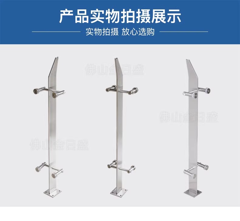 此物料为建筑工程护栏立柱,一次被市政建设府,髙铁站,无人候机楼,超商,中大型商家集中采购。难度高,耐磨性损,耐侵蚀,颜色好。加厚价格托架更多结识坚固耐用,圆棒玻璃板夹布置快捷