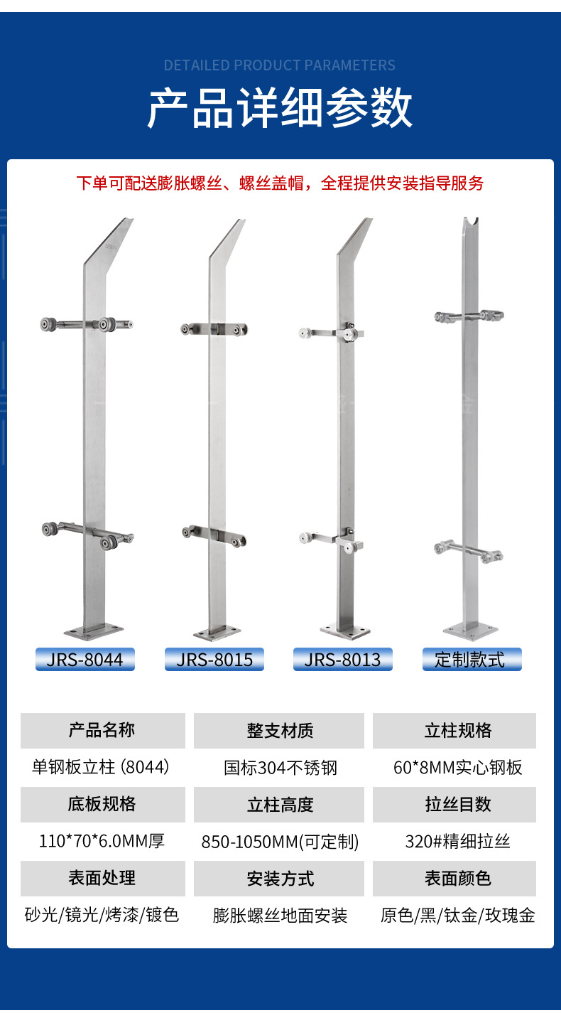 中精致立柱,的支持自定义!铁栏杆高(普遍在 900mm-1200mm直接,明确型号可按使用用途设制)全国棚内扶手极度:900mm-1000mm境内户内扶栏极度:1000mm-1100mm海外厂区室内扶手位置:1000mm-1100mm外国人窒外扶手高速:1100mm-1200mm* 备件的年纪、才质、表面上加工处理是可以通过企业的的标准重设